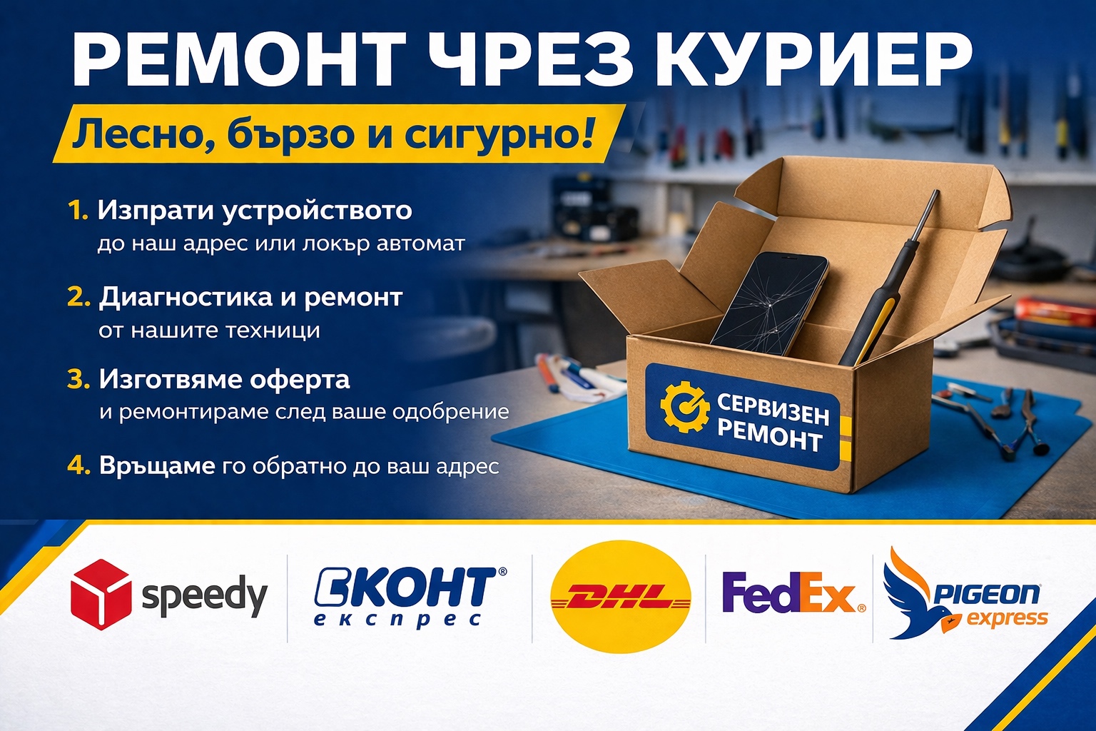 ✅ Ремонт чрез куриер – удобно и сигурно: